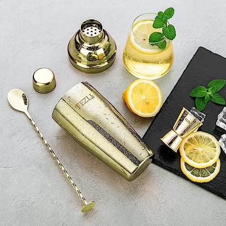 This reviewer found the Fezli set perfect to start home bartending. It has a good size shaker, built-in strainer, but the jigger might be a bit small for complex drinks.