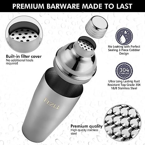This reviewer likes that the Fezli shaker set mixes drinks perfectly and has a tight seal. They suggest including a recipe booklet.